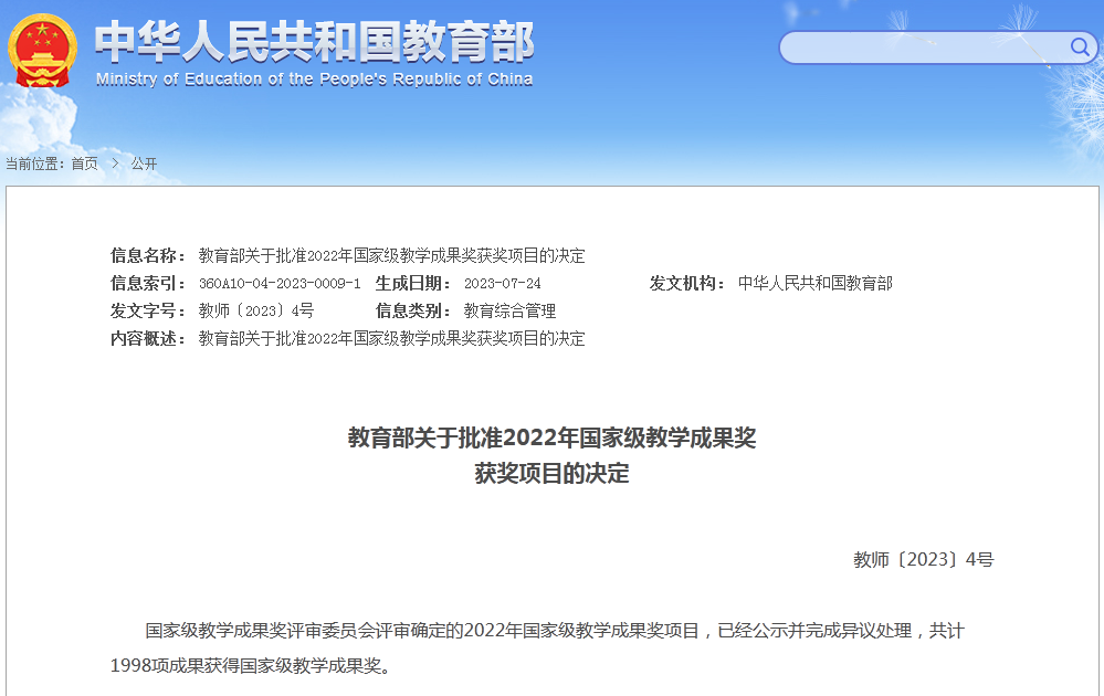国家级教学成果奖是我国在教育教学研究和实践领域中设立的最高级别奖项,每4年评审一次,代表着教育教学改革创新的最高水平。本届国家级教学成果奖(本科)山东省省属本科高校共获得7项。