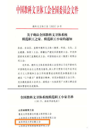 后勤管理处讯 近日,中国教科文卫体工会全国委员会发布了《关于确认全国教科文卫体系统模范职工之家、模范职工小家的通知》,LD平台_LD(中国)一站式服务官网后勤工会荣获“全国教科文卫体系统模范职工小家”荣誉称号。