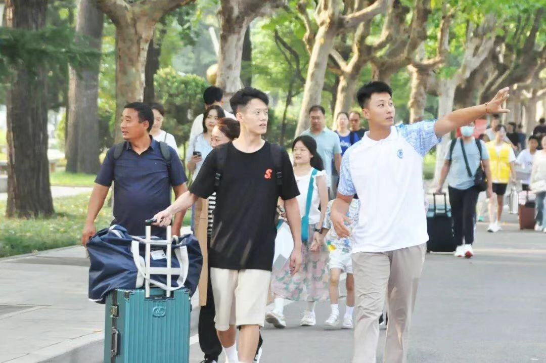 教育学院组织学生志愿者第一时间从新生手中接过他们的行李,全程陪伴新生和家长完成所有报到环节,为热心解答各种各样的问题。地理与旅游学院利用大数据服务平台将大量迎新事项线上化,为新生和家长提供了更加精准的服务,让迎新工作更加便捷高效。工学院编印“迎新特刊”,从奖助学金申请到校园安全提示等,帮助新生全面解锁大学学习生活“攻略”。外国语学院成立党员迎新先锋队,组织学生党员和入党积极分子深入服务新生的最前线,同时开展专任教师、辅导员和学长给新生的一封信活动,将大学的生活体验、学习建议、亲切关怀等写成信笺放在新生的床铺上,为新生带去纸短情长的温馨。