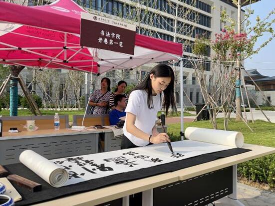 书法学院延续迎新特色传统——“开学第一笔”,组织新生在入学报到时运用自己擅长的书体在专门的长卷上写下自己的名字,并存录进学院为同学们打造具有专业特色的“成长档案”,与大学四年之后的毕业作品展相呼应,有“始”有“终”见证大学成长。