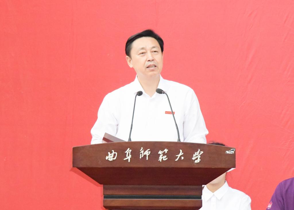 典礼在庄严的升旗仪式中拉开序幕。典礼上,党委书记邢光为新生代表佩戴校徽,勉励大家共担曲园的历史使命,共创未来荣光。党委副书记、校长张洪海以《守正创新求突破,勇毅前行谱新篇》为题,与新同学共话“大学之道”。党委副书记卢国强,党委常委、副校长胡凡刚分别在曲阜、日照校区主持典礼。