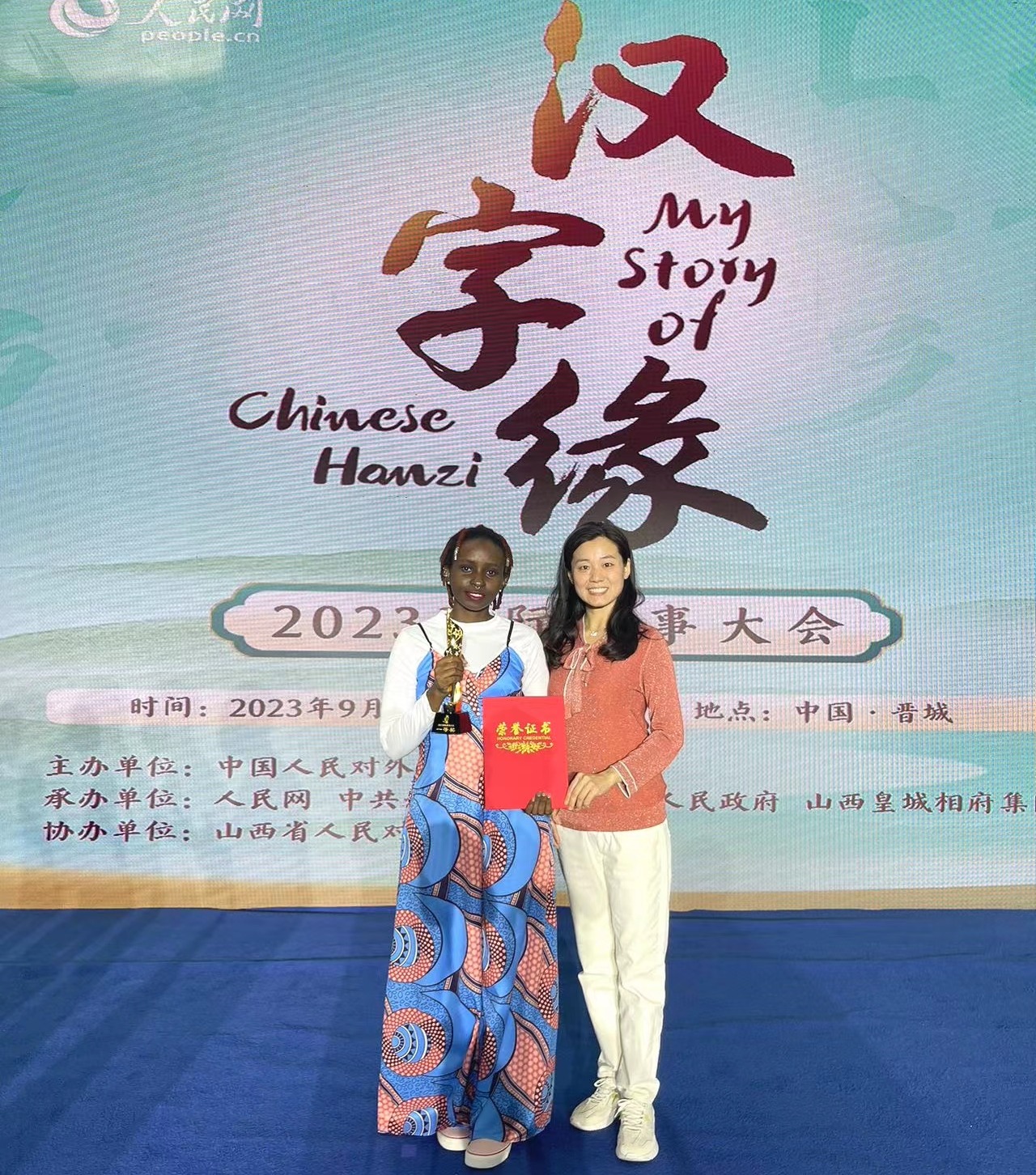 曲阜师大国际教育学院讯 9月14日,由中国人民对外友好协会主办、人民网承办的2023“汉字缘”国际故事大会决赛落下帷幕。曲阜师大国际教育学院肯尼亚籍留学生莉迪亚荣获“汉字缘”国际故事大会决赛一等奖,指导教师高敏获得本次大赛的“优秀指导教师奖”。