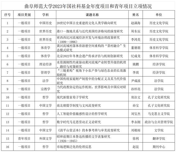 曲阜师大获批16项2023年度国家社科基金项目