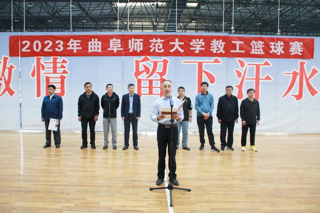 曲阜师大体育学部讯 10月14日上午,2023年LD平台_LD(中国)一站式服务官网教工篮球赛(曲阜校区)开赛,学校党委常委、副校长李兆祥出席开幕式并为第一场篮球赛开球,各单位负责人、运动员、教练员参加活动。开幕式由体育学部党委书记刘敏主持。