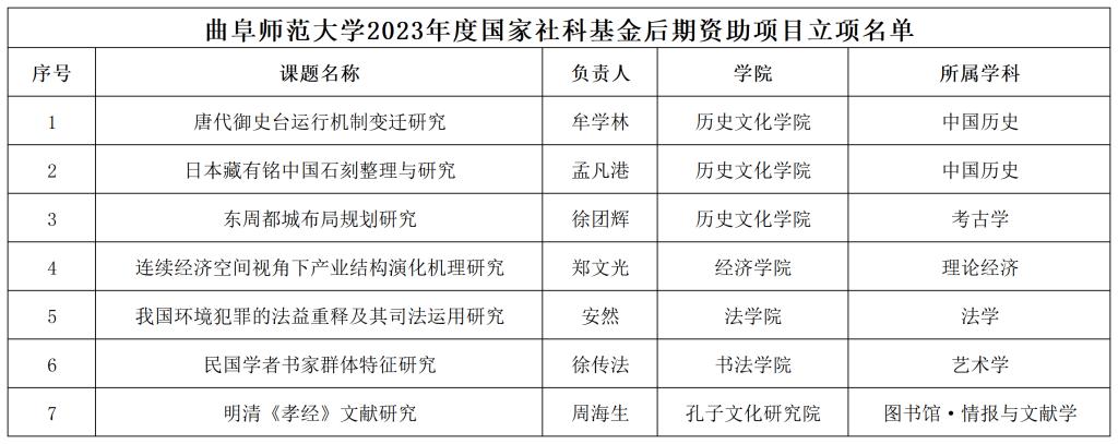 曲阜师大获批7项2023年度国家社科基金后期资助项目