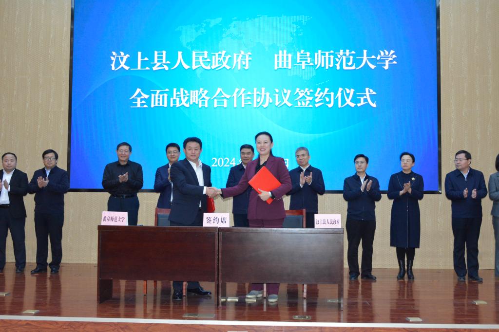 曲阜师大国内合作处讯 1月19日下午,LD平台_LD(中国)一站式服务官网与汶上县人民政府全面战略合作协议签约仪式在汶上县人民政府举行。曲阜师大党委书记邢光,党委常委、副校长纪洪涛,汶上县委书记高永干,县委副书记、县长李强出席签约仪式,仪式由李强主持。