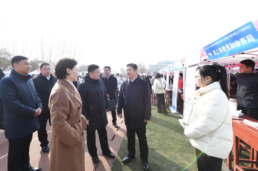 启动仪式结束后,与会领导深入招聘现场调研指导,听取了相关教体局负责人的汇报,和部分用人单位、求职学子进行交流,询问了岗位设置、招聘进度、求职状态等情况。