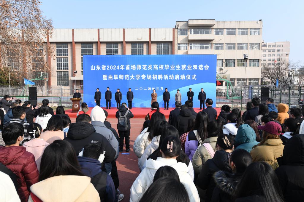 山东省委教育工委委员,省教育厅党组成员、副厅长张志刚在双选会启动仪式上讲话,曲阜师大党委书记邢光在仪式上致辞,曲阜师大党委副书记、校长张洪海主持仪式。出席仪式的领导还有:省教育厅高校学生处处长梁立波,省人力资源和社会保障厅公共就业和人才服务中心就业服务处处长张波,济宁市委常委、宣传部部长董冰,曲阜师大党委副书记卢国强,济宁医学院党委委员、副院长王文姮,济宁学院党委常委、副院长赵明,曲阜市委常委、市政府副市长、党组副书记王进。
