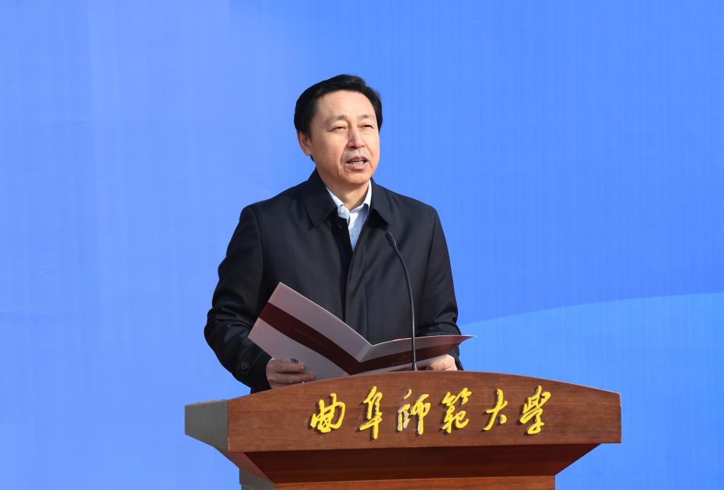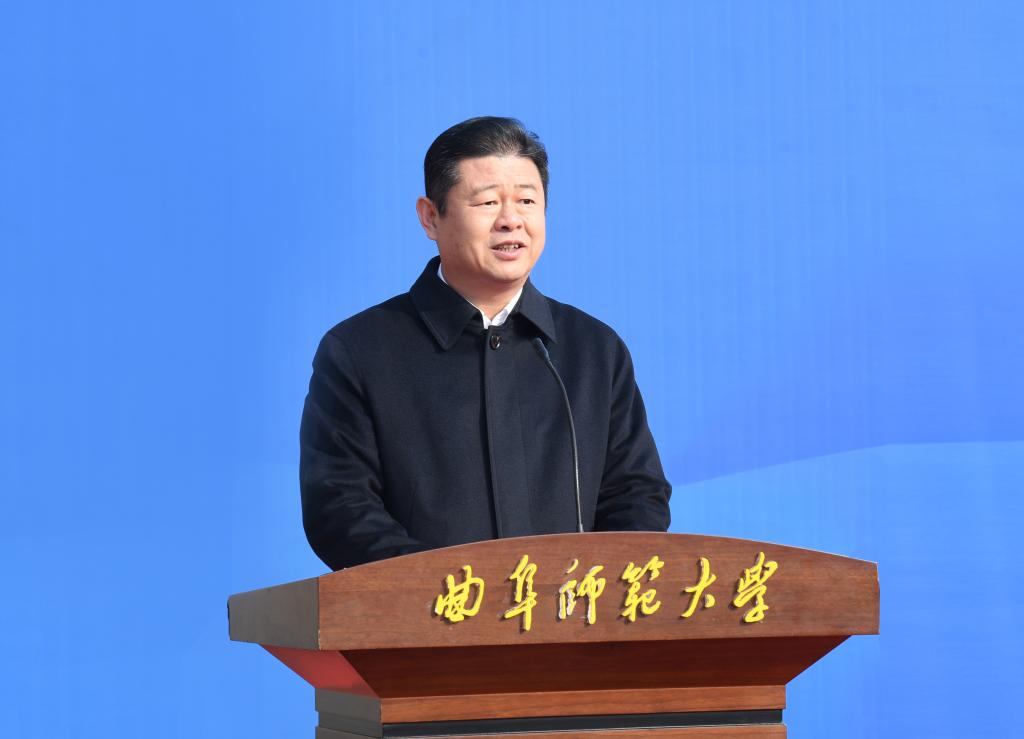 邢光在仪式上致辞,代表学校向出席会议的各位领导、各位朋友表示热烈欢迎,向大家长期以来给予曲阜师大的关心和支持表示衷心感谢。邢光简要介绍了学校办学育人的工作情况,他指出,曲阜师大扎根孔子故里办学,以弘扬优秀传统文化和培养卓越教师为鲜明特色,在全省率先形成了本、硕、博、博士后贯通的教师教育培养体系,学校现有师范类专业总数达到22个,覆盖所有基础教育课程门类。学校建校69年来已累计培养数十万“下得去、教得好、稳得住”的基础教育卓越教师,一大批曲园学子在全省、全国教育战线上辛勤耕耘、建功立业,涌现出了国家、省级优秀教师、模范教师、基础教育“国家万人计划”教学名师等模范典型,共同擦亮了曲阜师大“教师摇篮”的金字招牌。