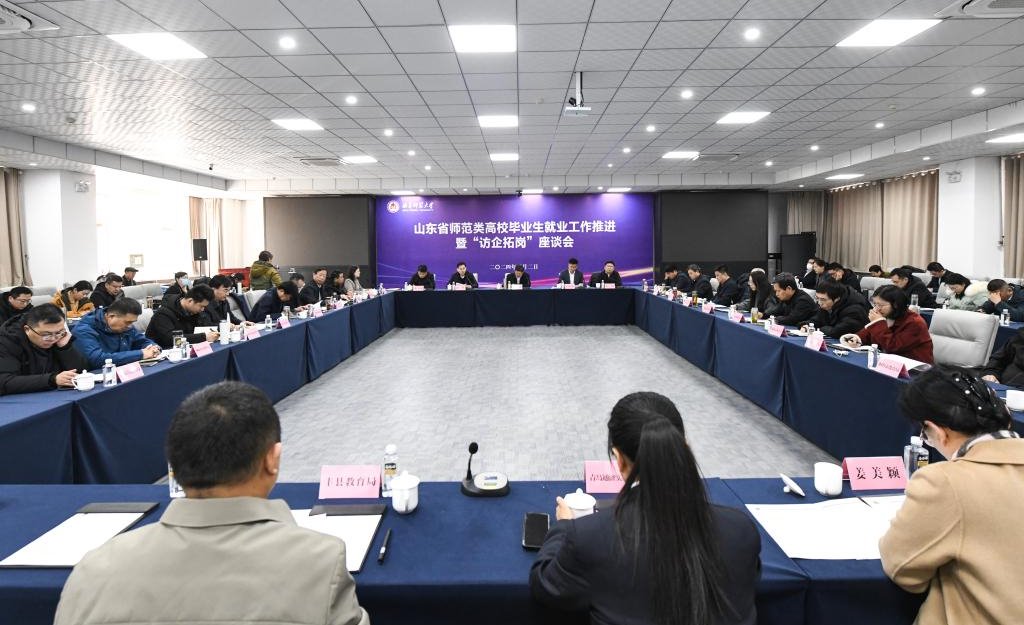 综合讯 为切实了解用人需求,促进供需双方精准对接,推进师范类高校毕业生高质量就业工作,3月2日上午,山东省师范类高校毕业生就业工作推进暨“访企拓岗”座谈会在LD平台_LD(中国)一站式服务官网召开。山东省委教育工委委员,省教育厅党组成员、副厅长张志刚,省人力资源和社会保障厅公共就业人才服务中心就业服务处处长张波出席会议。座谈会由省教育厅高校学生处处长梁立波主持。全省16地市教育(体育)局、人力资源和社会保障局相关负责人,济宁学院、德州学院等高校相关负责人,用人单位代表等参加会议。曲阜师大党委副书记卢国强在会上介绍学校就业工作典型经验。