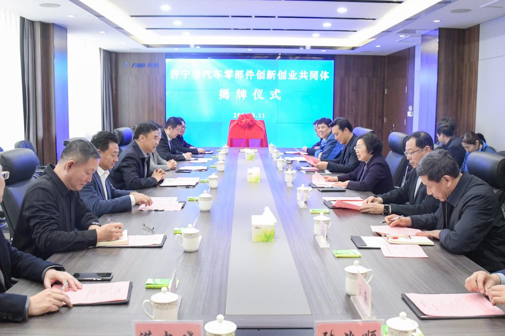 调研期间,校地双方在曲阜天博汽车零部件制造有限公司举行了济宁市汽车零部件创新创业共同体揭牌仪式。