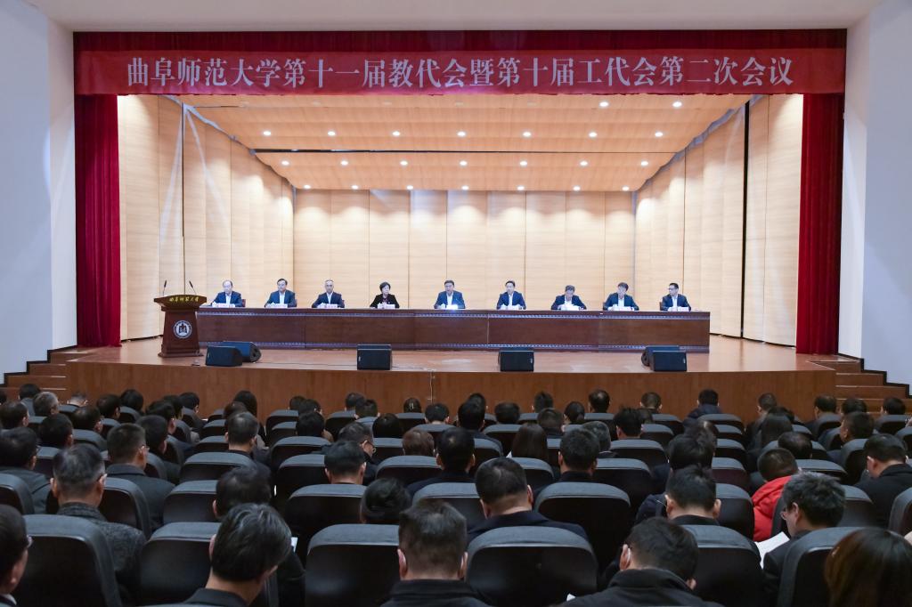 曲阜师大党委宣传部讯 3月13日,学校召开2024年工作部署会暨第十一届教代会、第十届工代会二次会议。学校党委书记邢光主持会议并讲话,党委副书记、校长张洪海作学校工作报告,党委副书记李志红作教代会建设和工会工作报告。学校领导,全校科级以上干部,双代会代表,市级以上“两代表一委员”、民主党派负责人、无党派代表人士出席会议。