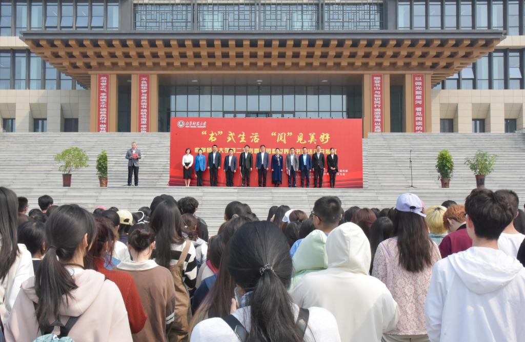 刘刚在致辞中强调,要把开展读书活动作为一件大事来抓,希望学校各单位以阅读推广和文化传承为使命,努力打造品牌化文化活动,引领校园文化建设;希望老师们把读书学习当成生活态度、工作责任、精神追求,推动“多读书、喜提能、善履职”深度融合、相互赋能;希望青年学生以书为伴、以书为友,养成终身阅读的习惯,提升认知,拓宽视野,丰富精神世界,学会自爱与自立,自信与自强。
