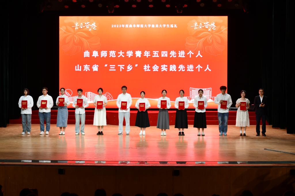 曲阜师大团委讯 为传承五四精神,表彰先进典型,4月26日,曲阜师大举办“青春答卷”2023年度最美大学生巡礼,党委副书记卢国强,党委常委、宣传部部长孙祥广出席本次活动。学生工作处、教务处、研究生处、团委主要负责人、各学院党委副书记、团委书记以及1100余名曲园学子参加了此次活动。