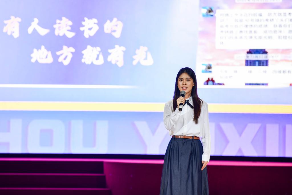 优秀青年学生代表世界大学生运动会射箭冠军王世坤、高质量就业代表周宇馨、中国大学生自强之星获得者张孝林、退役士兵代表杨会兴分别围绕夺冠历程、求学经历、志愿服务、参军体验与同学们进行了分享交流,彰显了曲园学子敢于吃苦、善于创新的进取品格,表达了曲园青年锐意进取、奋发向上的信心决心。