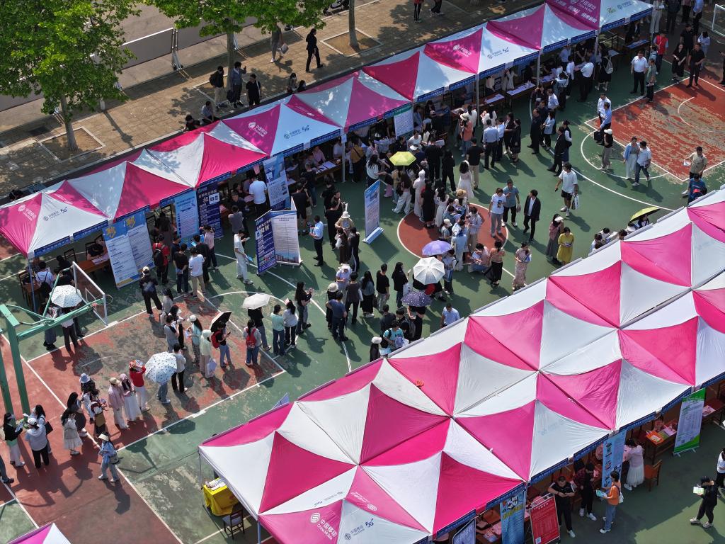招聘会现场人潮涌动,气氛热烈。与会领导深入招聘现场调研指导,和部分用人单位、求职学子进行交流,询问了岗位设置、招聘进度、求职状态等情况。毕业生与用人单位交流求职意向,用人单位热情地向同学们介绍岗位需求、薪资待遇等情况。日照市人社局、学校学生工作处、校医院还设置了就业加油站,涵盖就业政策讲解、征兵入伍咨询、简历诊断、健康服务等。招聘会现场及线上共投递简历两千余份,近三百名毕业生初步达成就业意向。