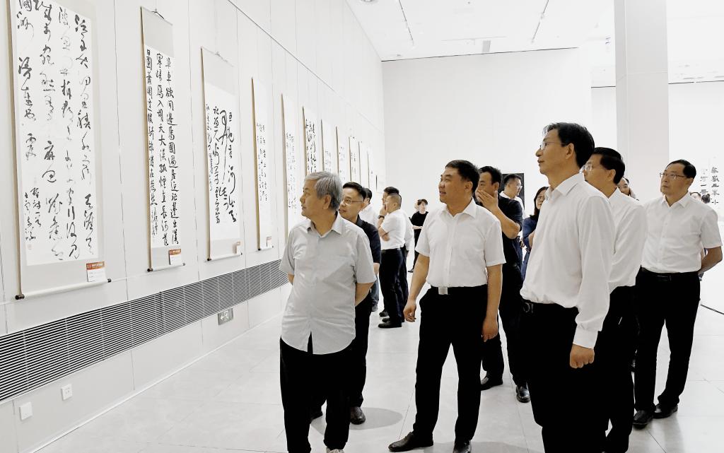 张茂瑞在讲话中表示,此次书法展深入挖掘“黄河文化”蕴含的思想观念和人文精神,突破“黄河”题材,着眼大“黄河文化”,彰显出当代书法家们独有的精神风貌、思想观念和审美情趣,为文化艺术界交流创作搭建了一个新的平台。我们将深入解码“文化基因”,丰富拓展时代内涵,切实加强交流合作,着力推动创新性发展、创造性转化,不断实现黄河文化声名远播、城市魅力亮丽绽放,为打造文化强市注入强劲持久的动力。