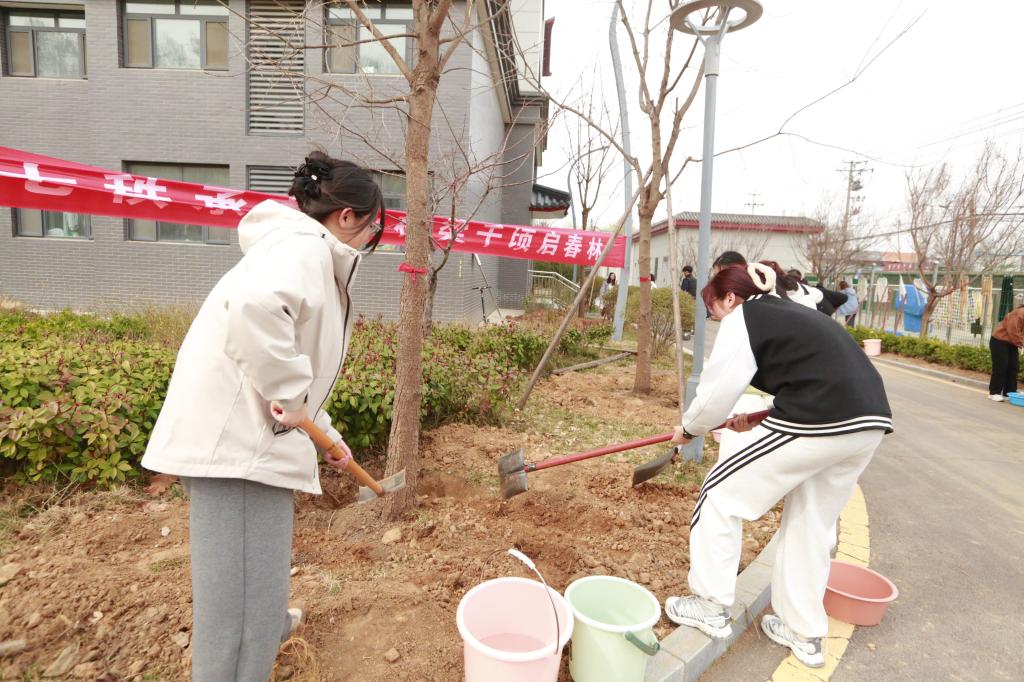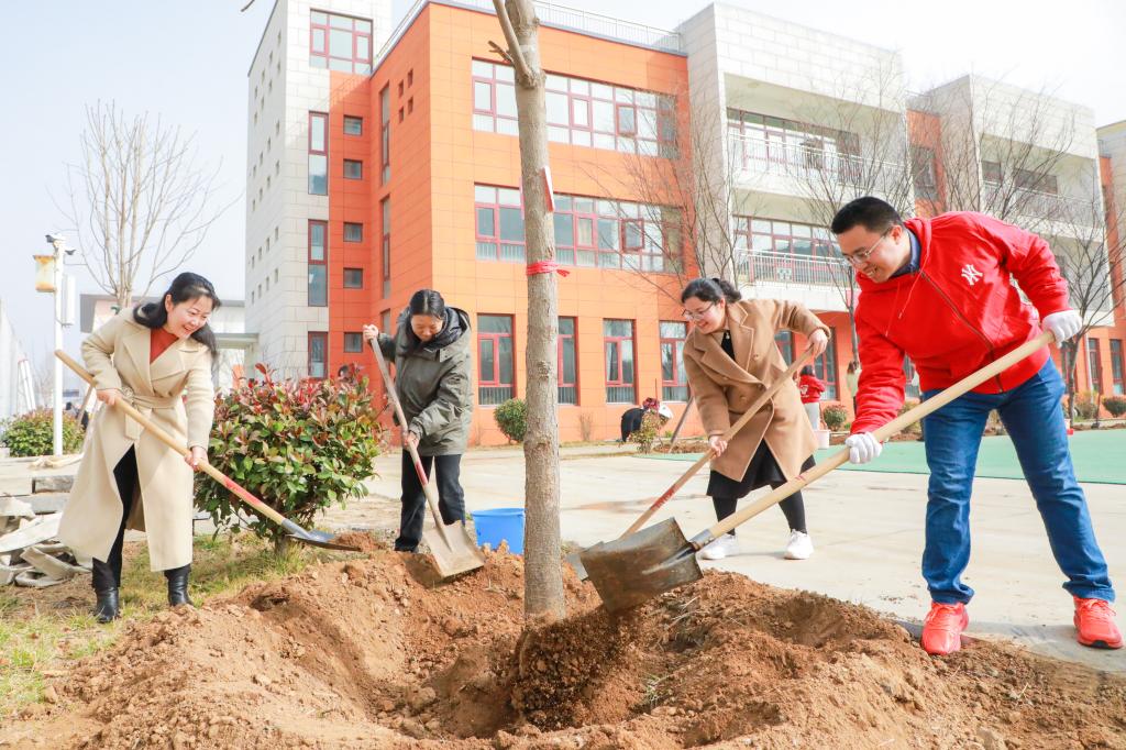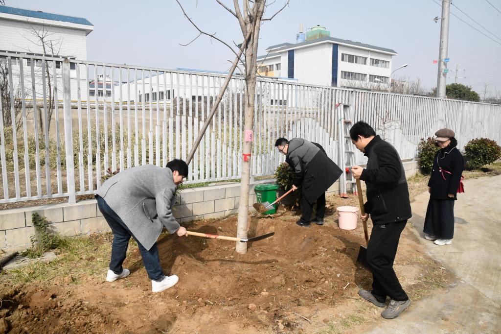 扶苗、培土、踩实、浇水……活动现场,师生热火朝天,一片忙碌景象,一颗颗象征着希望的苗株被种下。据了解,今年共栽植的苗木有榉树、七叶树、黄栌、楷树、梅花、无花果等6个品种100余株。