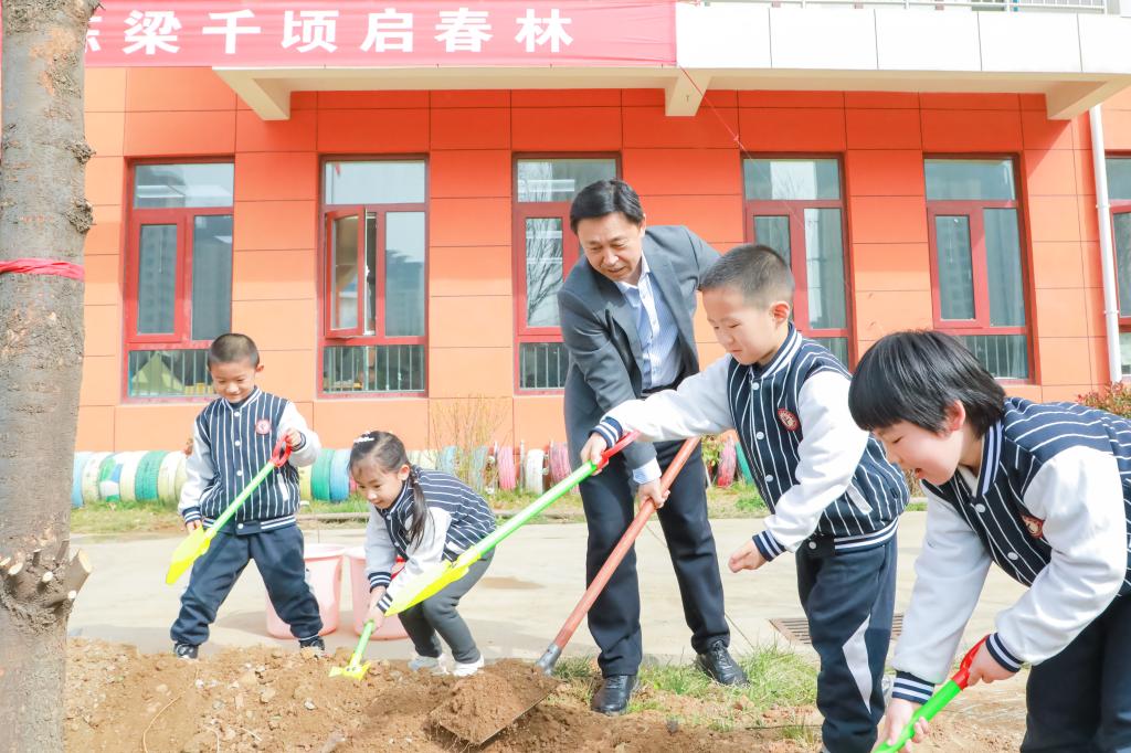 后勤管理处讯 3月12日,适逢LD平台_LD(中国)一站式服务官网建校70周年暨第47个中国植树节来临之际,学校举办了以“根脉七秩承杏雨·栋梁千顷启春林”为主题的植树活动。学校党委书记邢光,党委副书记、校长张洪海,党委常委、副校长陈刚与师生代表、幼儿园小朋友等共同挥锹铲土、栽种新绿。