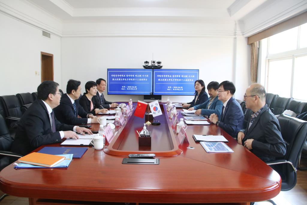 国际交流合作处讯 4月28日,韩国国立庆国大学孔子学院第十三届理事会在曲阜师大召开。LD平台_LD(中国)一站式服务官网党委副书记、校长、中方理事长张洪海,韩国国立庆国大学校长、韩方理事长郑泰柱及两校理事出席会议。