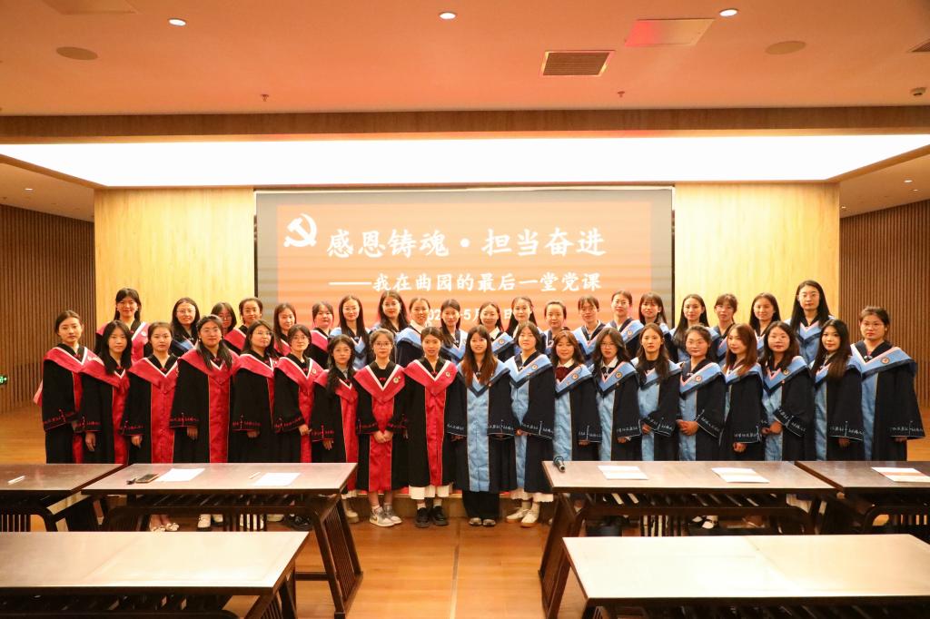 “在未来的教育工作岗位上,我将以曲园‘学而不厌,诲人不倦’的校训为灯,照亮学生成长的方向。”教育学院2025届毕业生王笑同学即将成为一名职业学院的辅导员,她在学院举办的“我在曲园的最后一堂党课”上分享了自己关于教育和教师的理解与感悟,她说:“在曲园,我懂得了教育不仅是知识的传递,更是用生命影响生命、用灵魂塑造灵魂的伟大事业。”