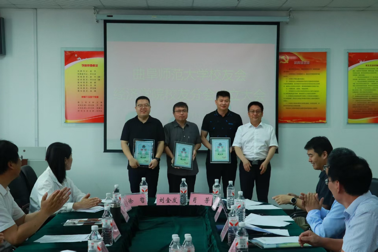 经济学院讯 6月15日,曲阜师大举行校友会经济学院分会成立大会。山东工商学院党委委员、副校长杜曙光,曲阜师大党委常委、副校长胡凡刚,党委常委、副校长刘刚出席会议。
