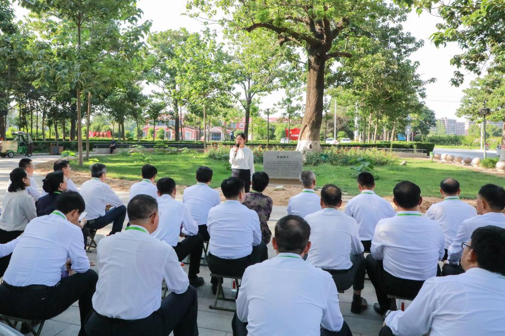 “习近平总书记有着深厚的焦裕禄情结,曾三次视察兰考。2009年第一次视察兰考时,他亲手种下了一棵泡桐树,也就是大家面前看到的这棵。”在习近平总书记手植树前的一堂生动微党课,为大家学习贯彻习近平总书记重要论述、努力做焦裕禄式的好党员、好干部提供了行动指南。