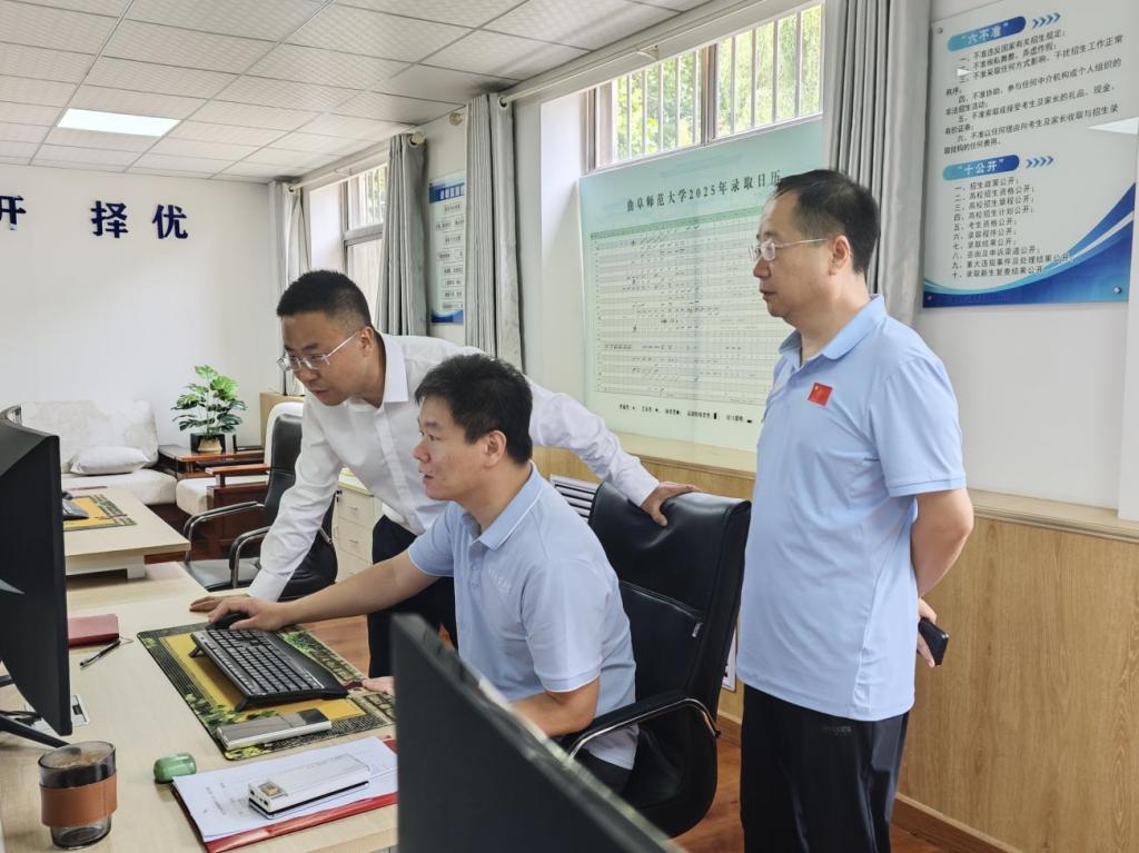 录取期间,校长张洪海、副校长李登旺亲临2025年本科生招生录取现场检查指导工作,看望慰问奋战在招生一线的工作人员。学校领导详细询问了录取工作的整体流程、考生投档、专业录取、数据审核等关键环节的运行情况,并实地查看了录取流程,通知书打印、封装及寄递,咨询服务等各环节的工作,对招录工作的规范有序开展给予充分肯定。