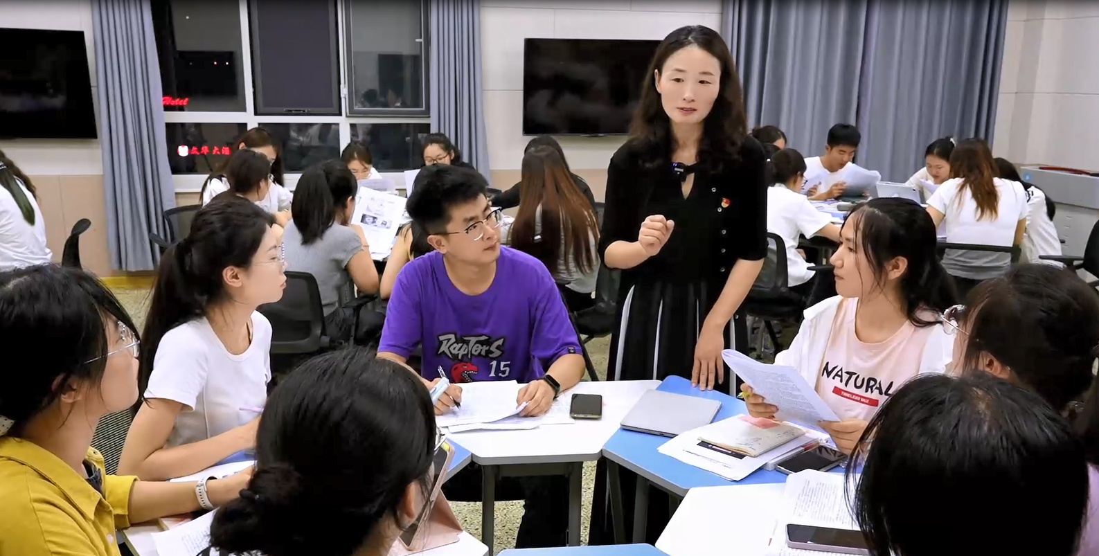 肖芳教授在课堂上组织学生开展分组讨论