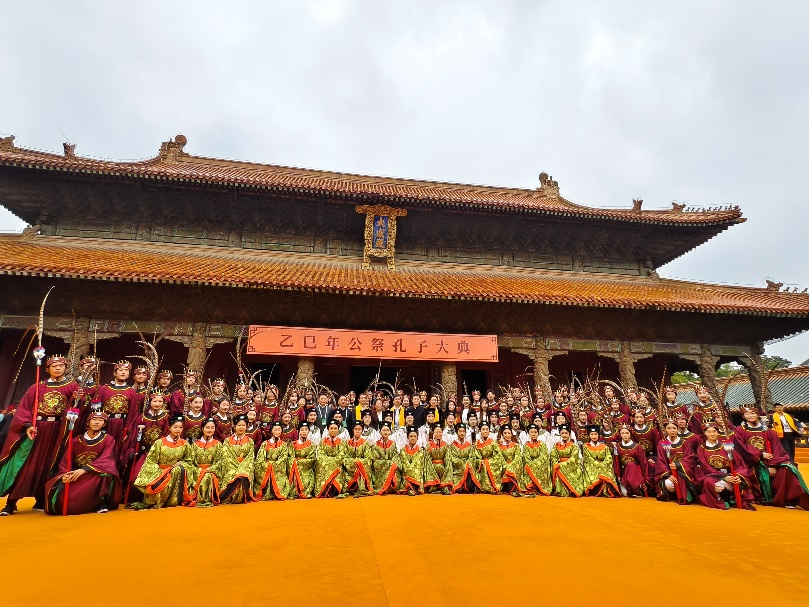 音乐学院讯 9月28日,乙巳年公祭孔子大典在曲阜孔庙隆重举行,由曲阜师大音乐学院170名师生组成的专业团队,在2025中国国际孔子文化节期间圆满完成雅乐演奏、乐舞告祭、礼仪服务等任务,所主演的八佾舞《新编祭孔乐舞》作为大典的核心亮点,通过乐舞形式展现儒家思想文化,阐释儒家学说中“礼”的涵义,赢得了中外嘉宾的一致好评和高度赞扬。
