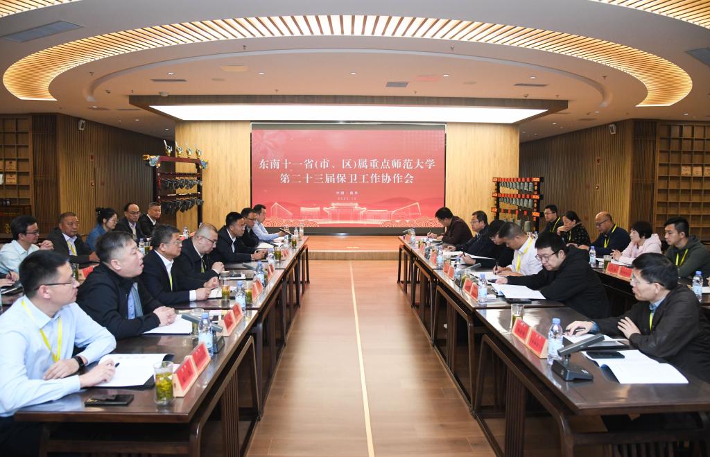 曲阜师大保卫处讯 10月14日,东南十一省(市、区)属重点师范大学第二十三届保卫工作协作会在曲阜师大召开。曲阜师大党委常委、副校长李登旺出席会议并致辞。