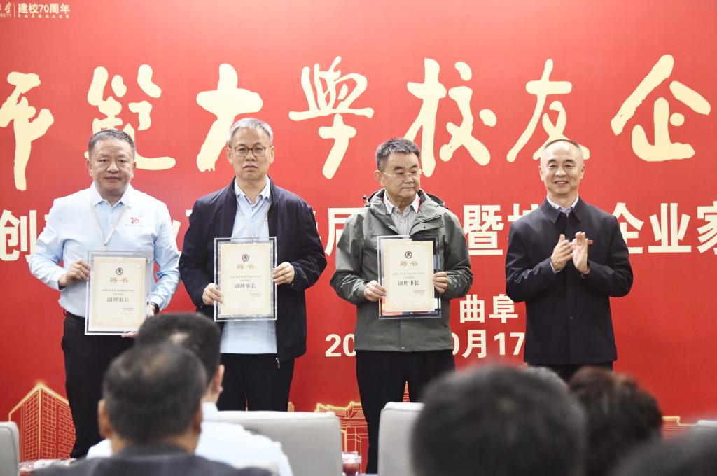 李兆祥为理事会成员颁发聘书,并向近期为捐赠母校的地方校友会代表颁发了捐赠证书。