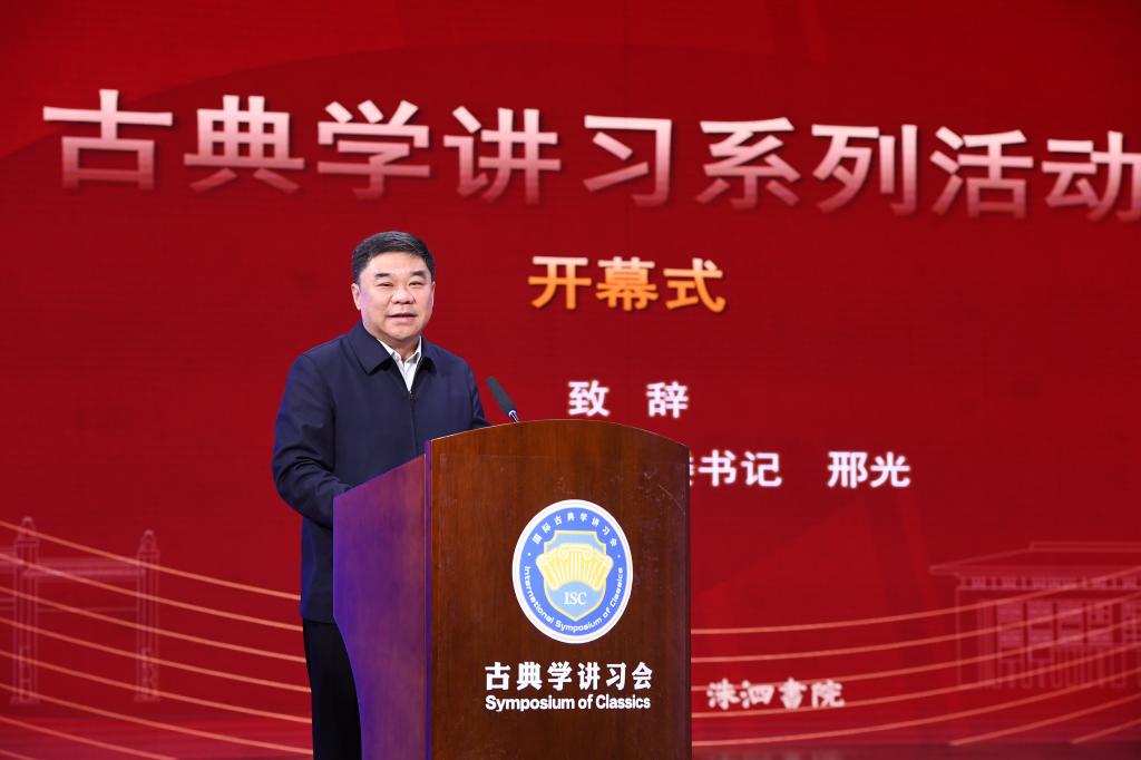 邢光在致辞中对各位嘉宾的到来表示热烈欢迎,并向长期以来关心支持学校事业发展的各界朋友致以最诚挚的感谢。他指出,曲阜师大扎根孔子故里,始终将“为国弘文”视为治学育人的重要理念,秉持“赓续洙泗学脉,阐明知行学理;融贯百家学术,光大中华文化”的宗旨,致力于搭建古典学交流平台,推动古典学研究繁荣进步。希望以此次讲习会为契机,深入践行全球文明倡议,为推动文明传承创新、促进文明交流互鉴作出新的贡献。