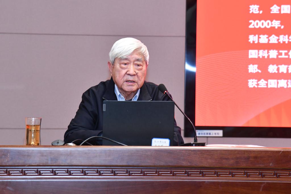 邢光在主持讲座时代表学校向戚发轫院士致以诚挚的欢迎和崇高的敬意,他表示,戚发轫院士的讲座既有对精神自强赋能人生奋斗的价值传递,又有对科技自立助推国家发展的战略诠释,不仅是一场航天科普课,更是一堂浸润人心、启迪理想、凝聚力量的爱国主义教育课。希望曲园教师大力弘扬科学家精神和教育家精神,以立德树人、科研创新的担当和作为,为科技强国、教育强国建设作出更大贡献。勉励曲园学子汲取榜样力量,厚植爱国情、砥砺报国志,崇德尚学、追求卓越,努力成为堪当大任的时代新人。