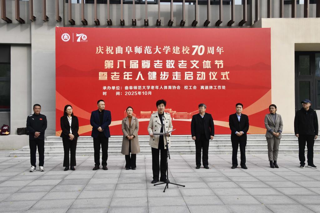 李志红向全体离退休教职工致以节日问候,感谢他们作为学校发展的亲历者、建设者和见证者,为学校七十年发展所作出的贡献。她表示,学校党委始终高度重视离退休工作,不断改善活动条件,落实各项待遇,积极营造老有所养、老有所为的良好环境。本次健步走活动既是学校“以老为尊”理念的生动实践,也是凝聚校园正能量的重要载体。她希望老同志们能在运动中愉悦身心、增进交流,并要求各单位继续用心用情做好服务保障,让老同志安享幸福晚年。