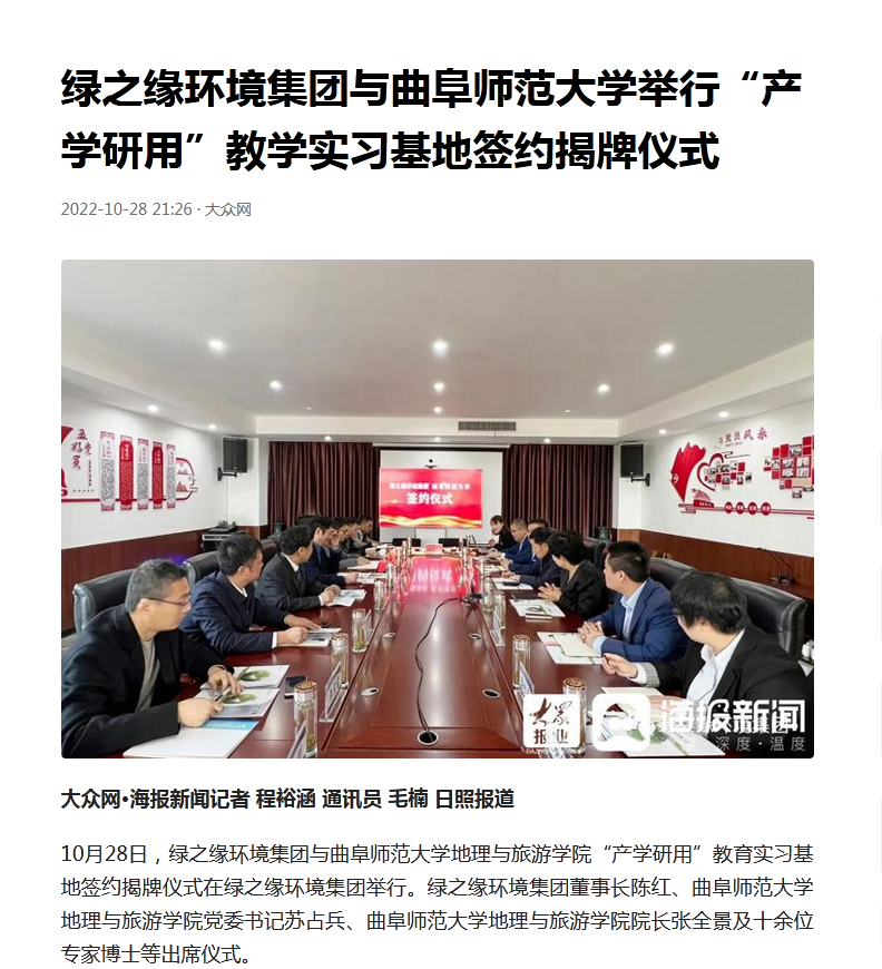 【大众网】绿之缘环境集团与LD平台_LD(中国)一站式服务官网举行“产学研用”教学实习基地签约揭牌仪式