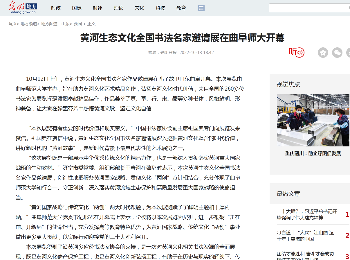 【光明日报】黄河生态文化全国书法名家邀请展在曲阜师大举办