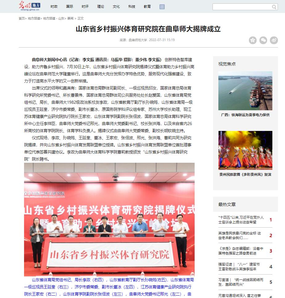 【光明网】山东省乡村振兴体育研究院在曲阜师大揭牌成立