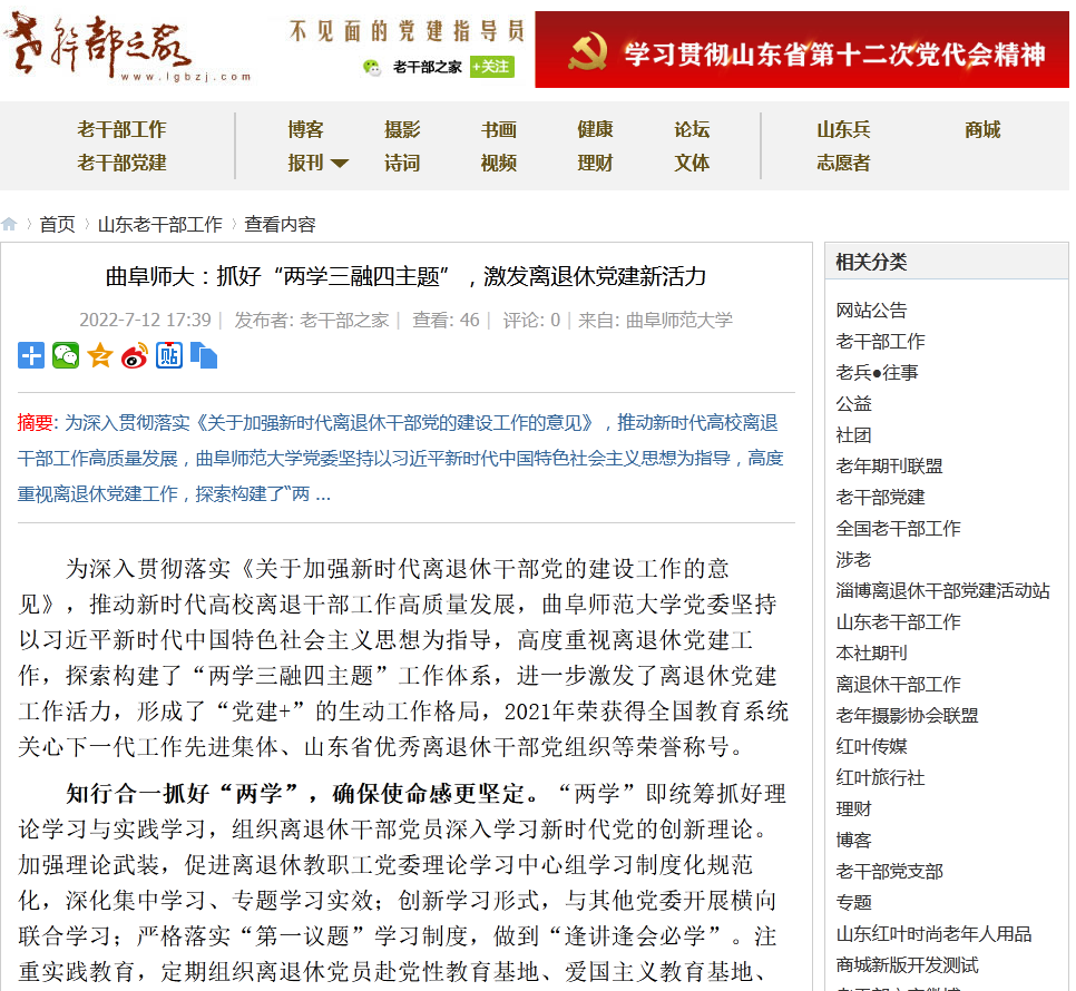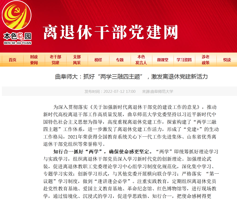 【离退休干部党建网】曲阜师大:抓好“两学三融四主题”,激发离退休党建新活力
