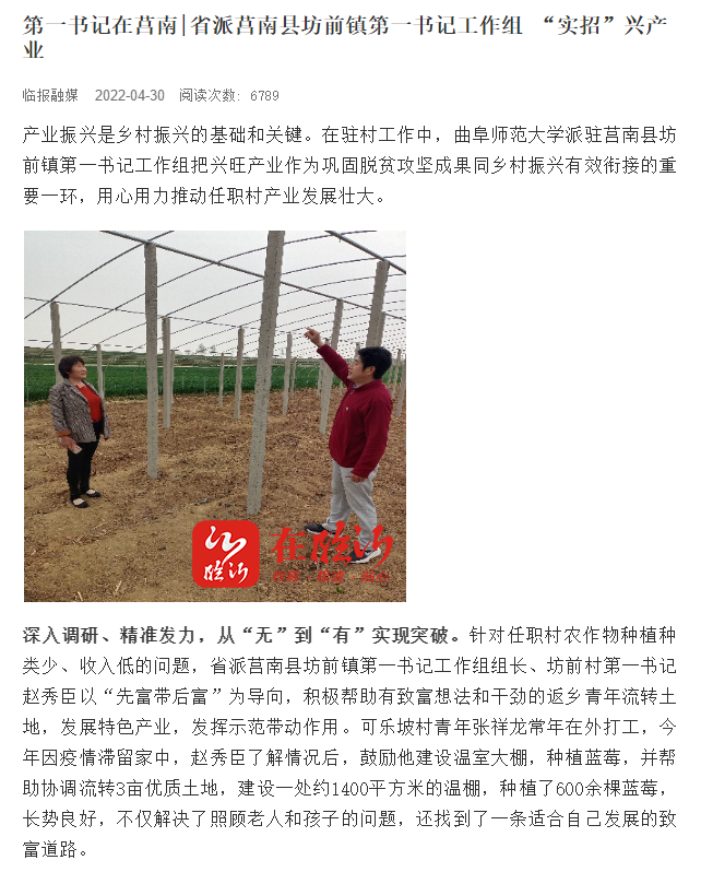【临沂融媒】省派莒南县坊前镇第一书记工作组 “实招”兴产业