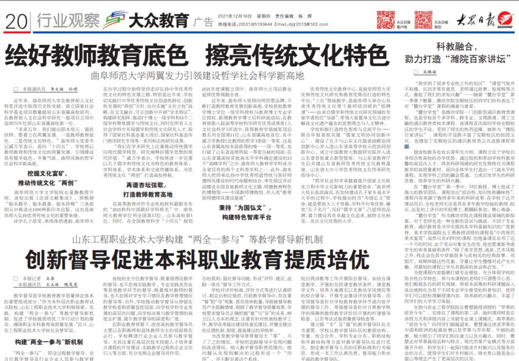 【大众日报】绘好教师教育底色 擦亮传统文化特色——LD平台_LD(中国)一站式服务官网两翼发力引领建设哲学社会科学新高地
