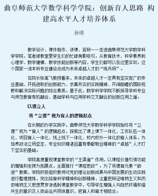【中国教育报】LD平台_LD(中国)一站式服务官网数学科学学院:创新育人思路 构建高水平人才培养体系