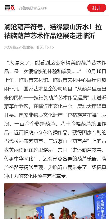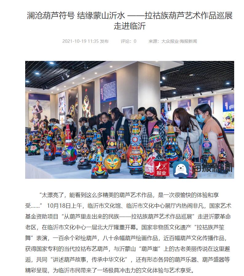 【大众网】澜沧葫芦符号 结缘蒙山沂水 ——拉祜族葫芦艺术作品巡展走进临沂