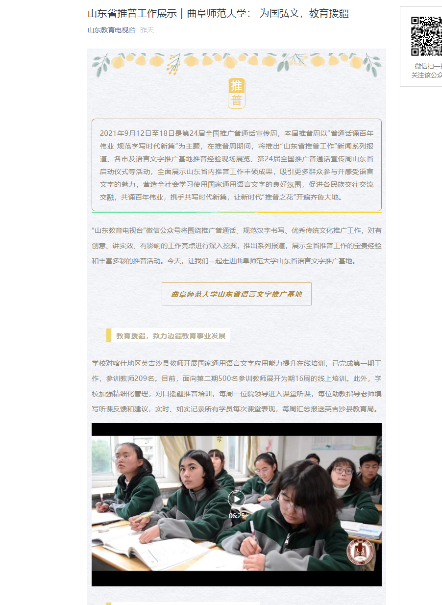 山东教育电视台报道链接:https://mp.weixin.qq.com/s/c-zBVXLQdaZTBja_xBmYtA