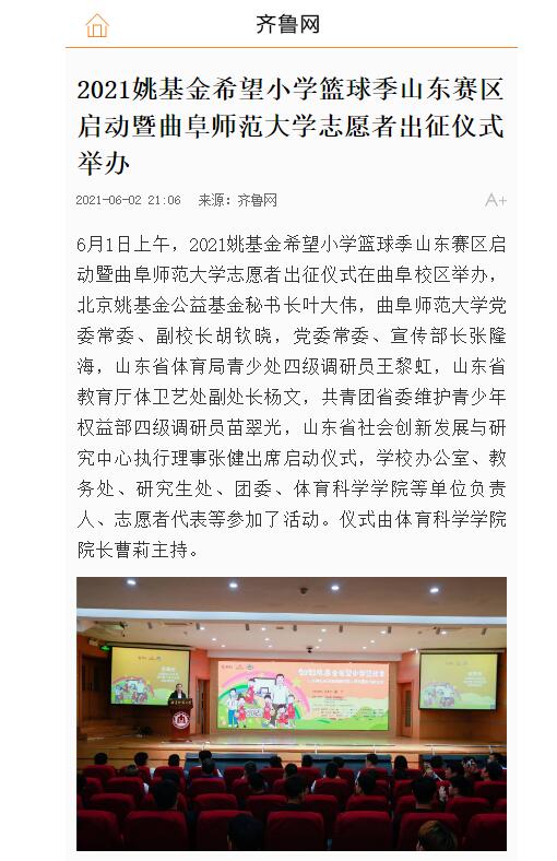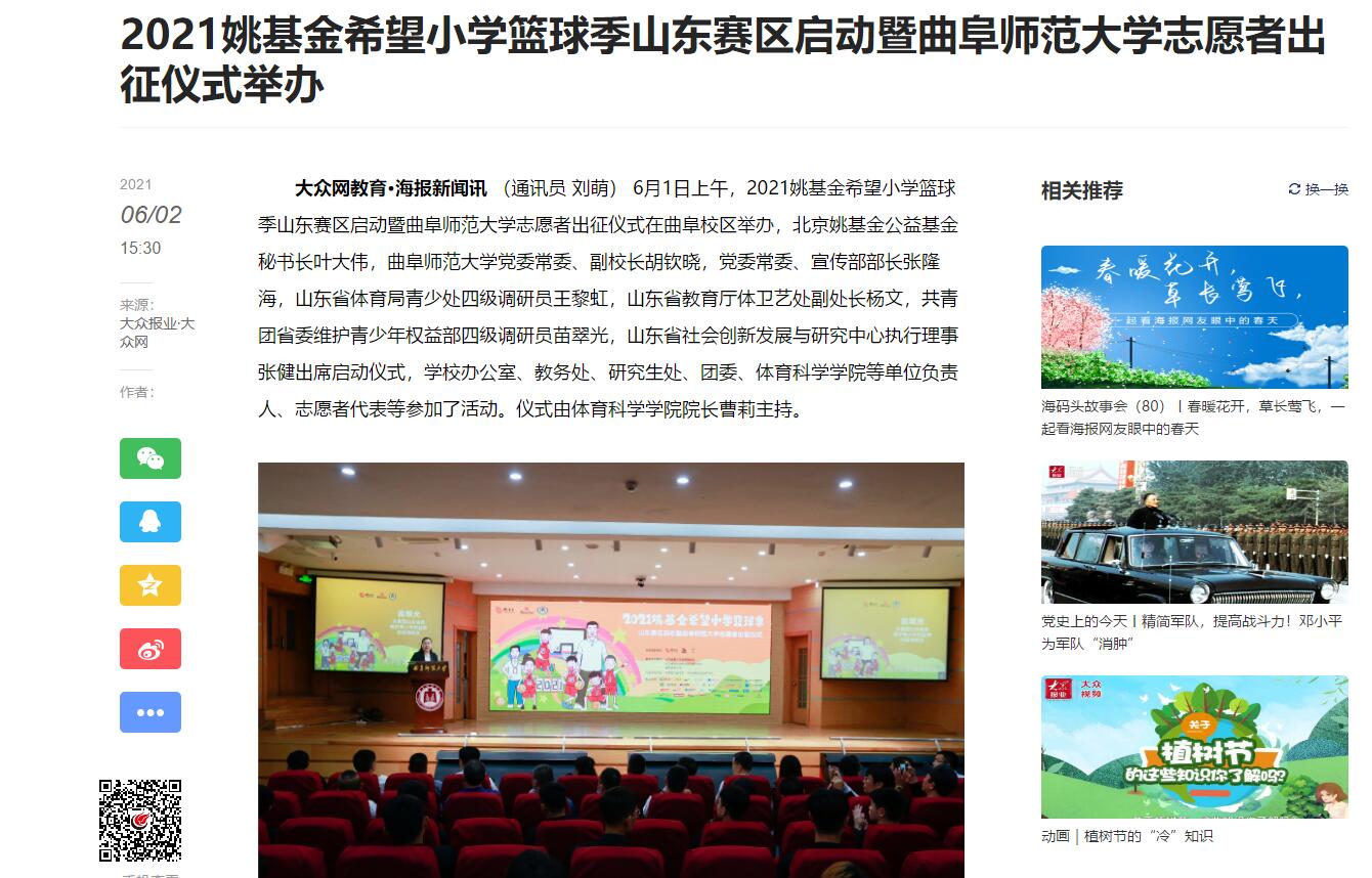 大众网:2021姚基金希望小学篮球季山东赛区启动暨LD平台_LD(中国)一站式服务官网志愿者出征仪式举办