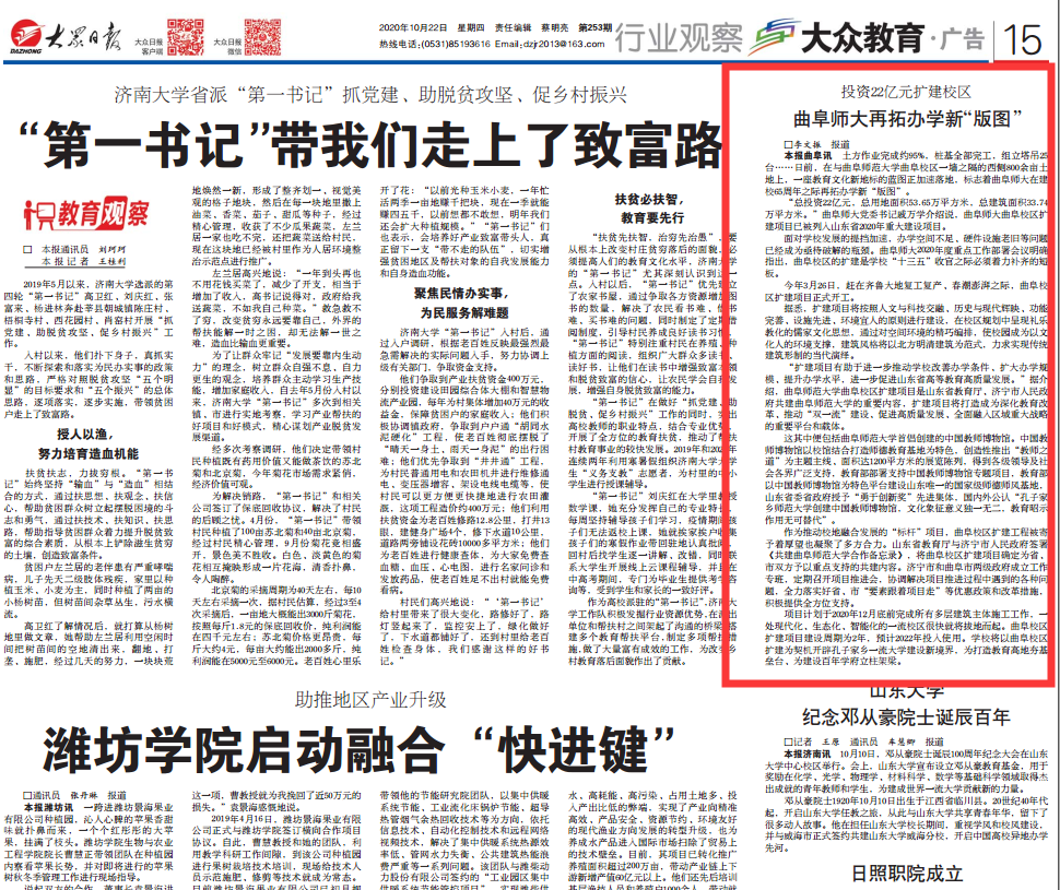 大众日报:曲阜师大再拓办学新“版图”