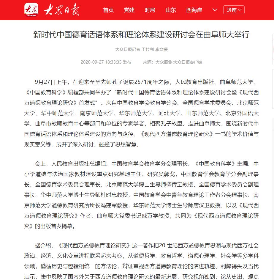 大众日报:新时代中国德育话语体系和理论体系建设研讨会在曲阜师大举行