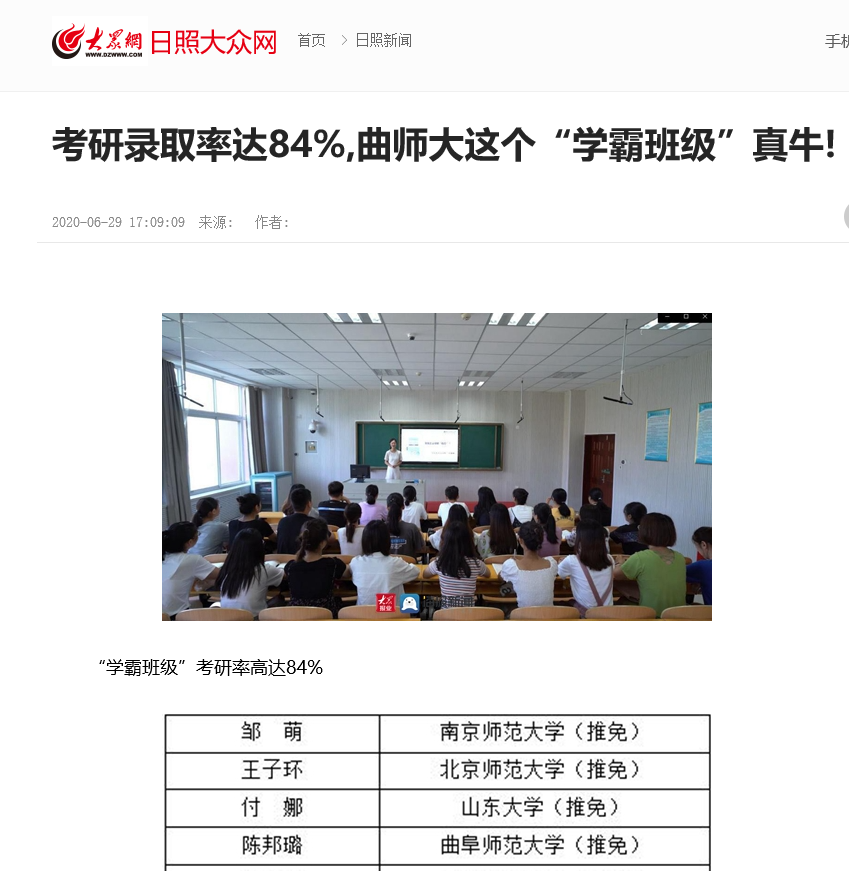 大众网:曲师大这个“学霸班级”考研录取率达84%,