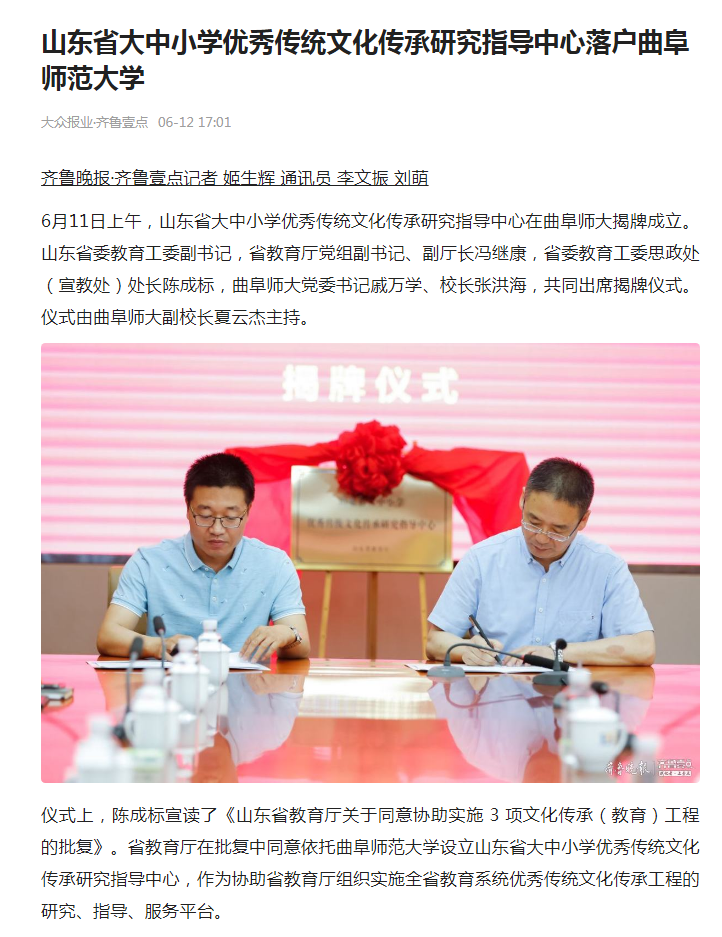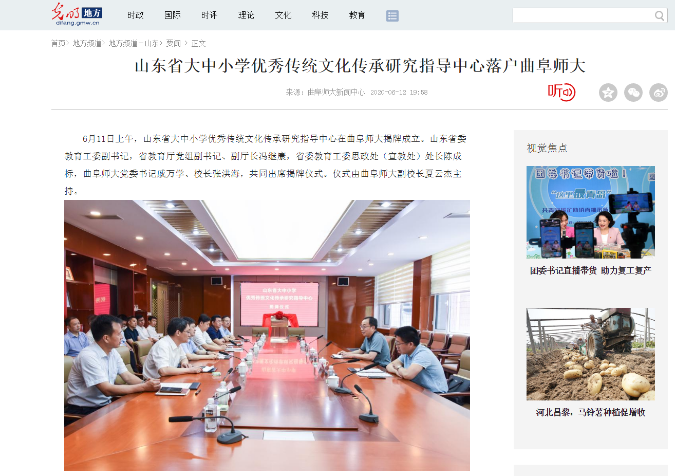 光明网:山东省大中小学优秀传统文化传承研究指导中心落户LD平台_LD(中国)一站式服务官网