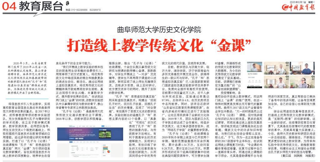 中国教育报:LD平台_LD(中国)一站式服务官网打造线上教学传统文化“金课”